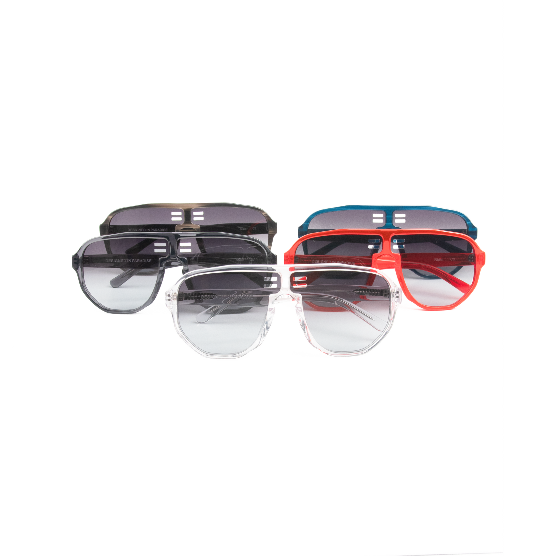 RIDER comes in blue, bone, clear, grey and red frames.