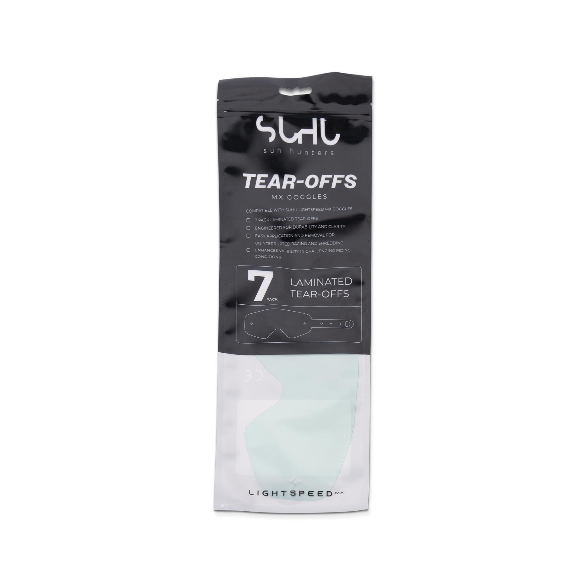 High-performance Tear-Offs to fit SUHU Lightspeed MX / Snow Goggles. Designed with precision and durability in mind to withstand the rigours of motocross racing and the challenges of skiing / snowboarding, ensuring you maintain clarity even in the most demanding conditions.