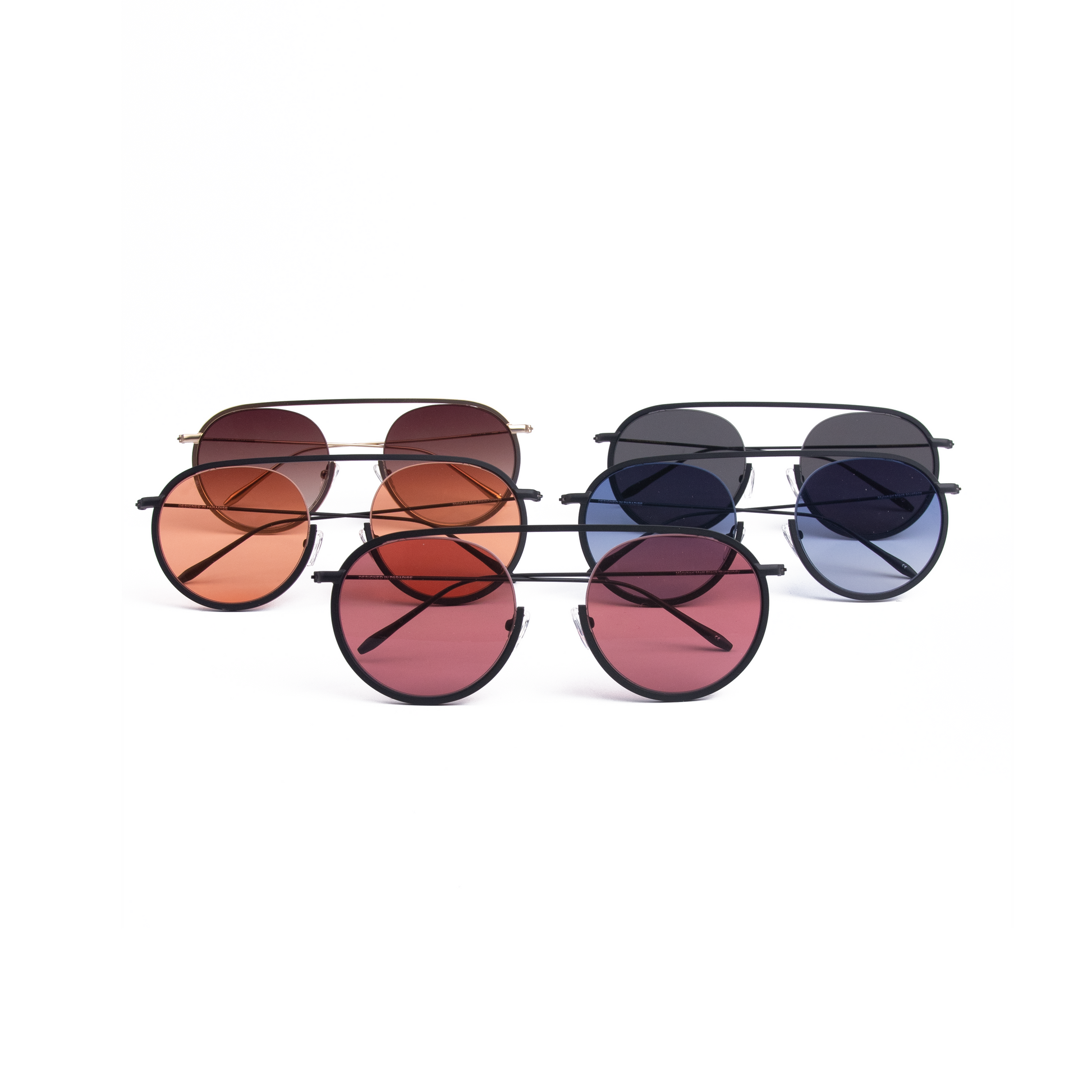 Our MATAHARI model comes in matt black all with grey, orange, burgundy glasses or blue fade. The Newest addition is matt gold with gradient brown glasses.