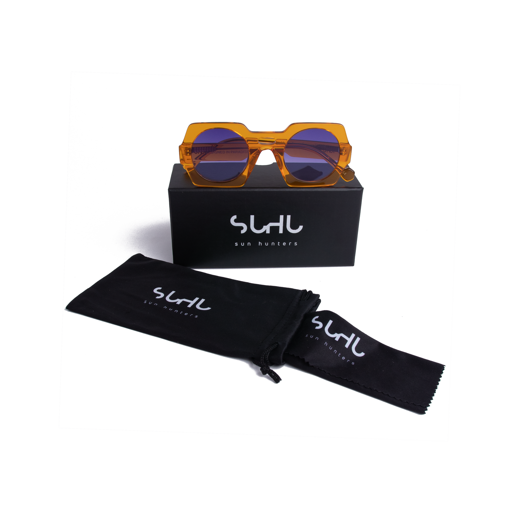 Looking for a bold, edgy pair of sunglasses? Look no further than MONA! These sunglasses are perfect for those who like to make a statement. The squared shape and black color make them perfect for those who want to look stylish and trendy. The transparent orange color is perfect for those who want to add a little pop of color to their look. And the different glass color options make it easy to find the perfect shade for your eyes. Whether you're headed to the beach or out for a night on the town, MONA is the perfect choice for those who want to make a statement.