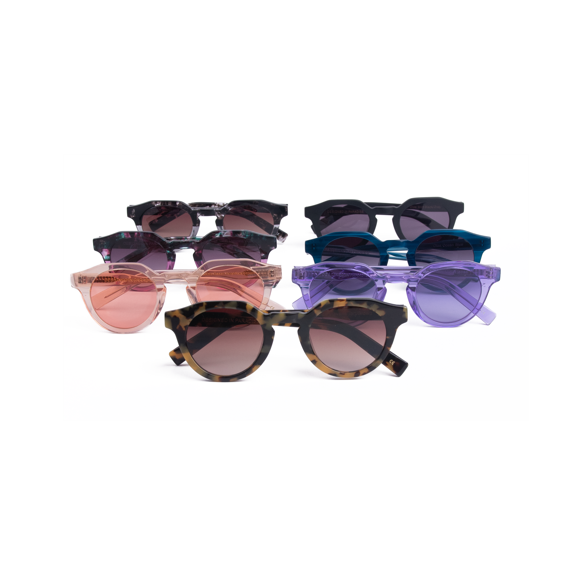 Introducing the OLAS sunglasses! Our OLAS model comes in Violet and Gray Laminate, Ocean Blue, Matt black, transparent Peach-Pale brown and Havana Tort-Brown color variations to suit your mood each day of the year.